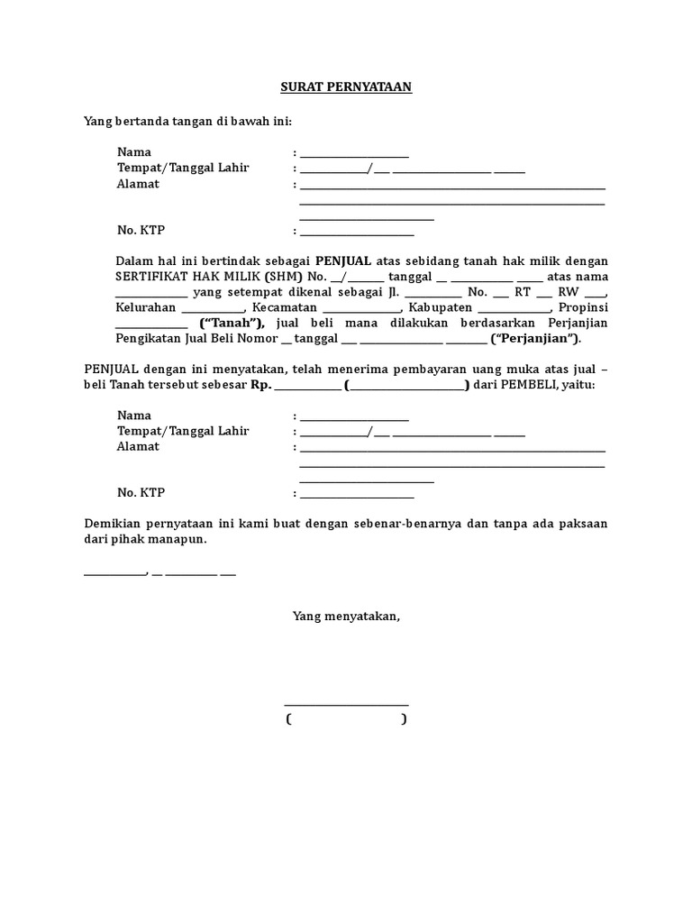 Biasanya surat jual beli rumah satu ini ditandatangani di hadapan pejabat pembuat akta tanah (ppat) atau notaris. Perbedaannya adalah bahwa surat ini hanya bersifat pengikat, atau surat awal yang digunakan untuk mengikat antara penjual dan pembeli. Saya yang bertanda tangan dibawah ini ayat 1 pihak pertama menyerahkan sebuah kendaraan serta stnk (surat tanda nomor. Hal ini ditujukan untuk pihak pertama agar mengukuhkan dan memberi kejelasan bahwa rumah yang hendak dijual memang dimiliki sepenuhnya oleh yang bersangkutan. We hope you are all enjoy and lastly will get the best picture from our collection that put up here and also use for ideal needs for personal use.